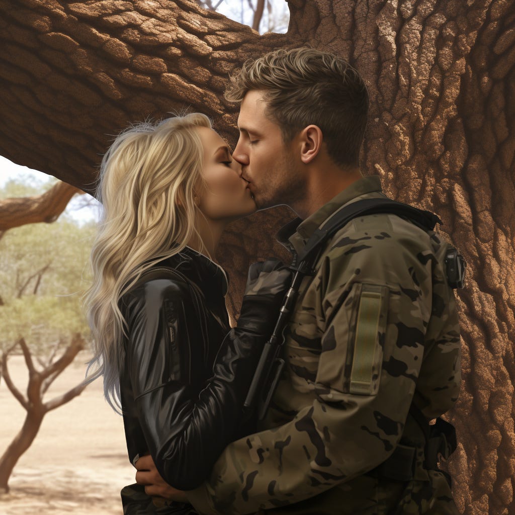 But now it was his turn to shoot. He checked his gun, making sure it was loaded, and shifted, taking a peek from his cover. Gazing over the field, he spotted her lying on the ground behind a log, aiming in his direction.